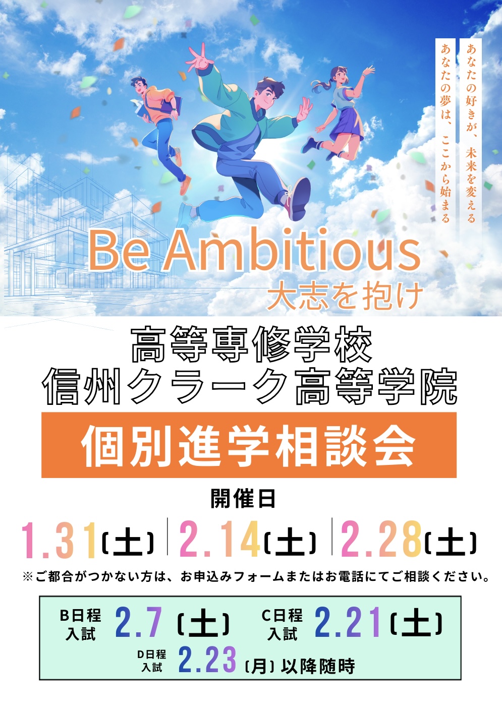 資料請求・個別相談はこちら|信州クラーク高等学院(上田市の通信制高校)